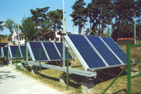 Solar hot water system with 36 m2 solar collector type SKV-3 for a swimming pool and a kindergarten, 2000. (Self-governmental investment with state