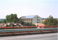 Solar domestic hot water system with 48 m2 solar collector type SKV-3 for a country house ont he roof of a side building and other 48 m2 collector for heating the water for a hotel and a swimming pool on North Hungary, 1997.